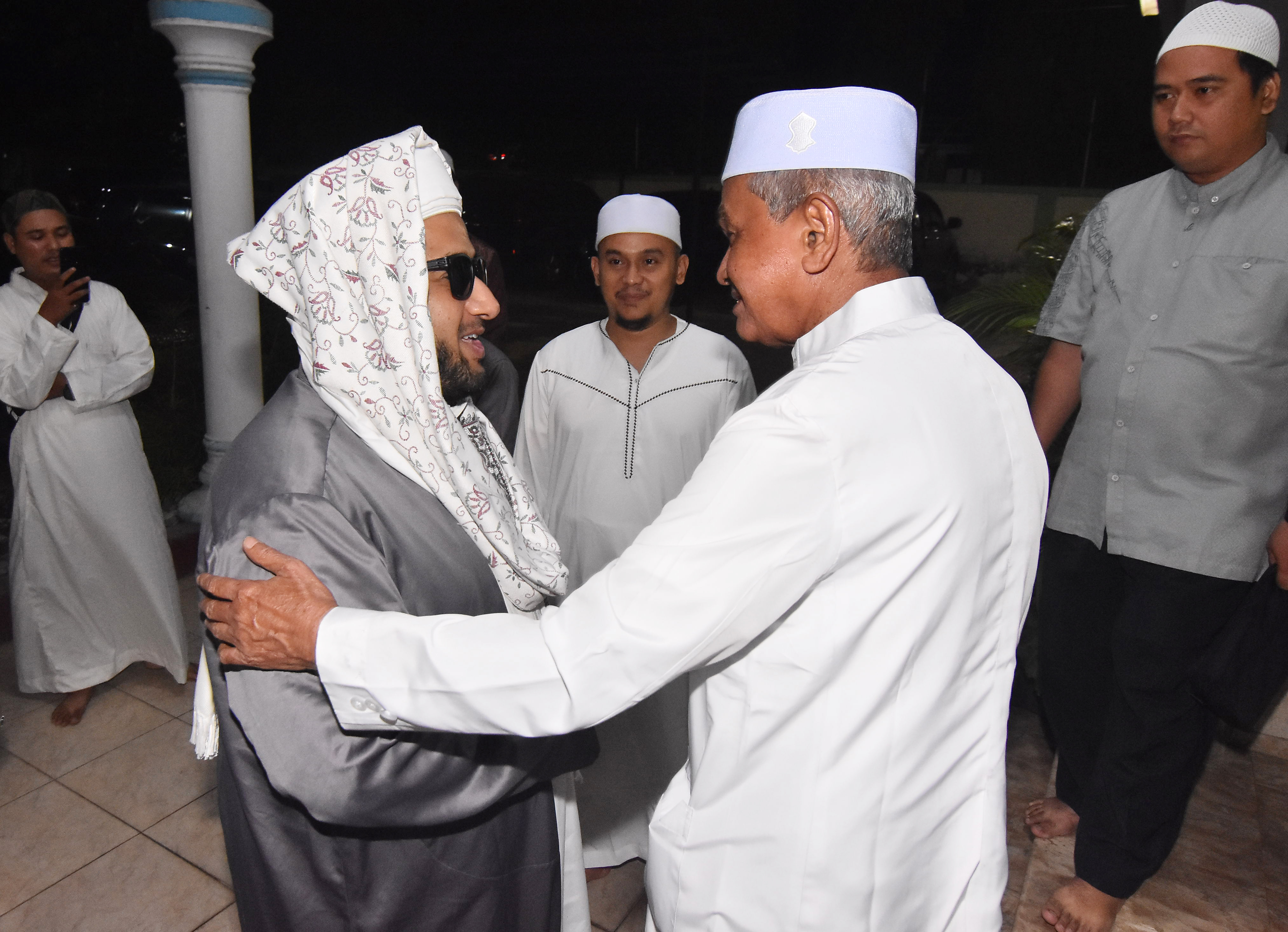 HEADLINE9.COM, MARTAPURA – Bupati Banjar Khalilurrahman menyambut kedatangan Habib Umar bin Zein bin Ibrohim bin Smith dari Yaman bersama rombongan di kediaman rumah Dinas. Martapura, Selasa (23/19) malam. Guru Khalil, sapaan akrab Bupati mengucapkan selamat datang di kota Martapura dengan bahasa arab.