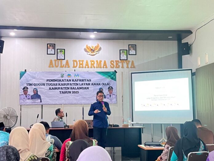 Headline9.com, Balangan – Dinas Pemberdayaan Perempuan dan Perlindungan Anak, Pengendalian Penduduk dan Keluarga Berencana serta Pemberdayaan Masyarakat dan Desa (DP3A P2KB PMD) Kabupaten Balangan menggelar kegiatan Peningkatan Kapasitas Tim Gugus Tugas Kabupaten Layak Anak (KLA) di Aula Dharma Setya, Paringin Selatan, Kamis (20/11/2025).