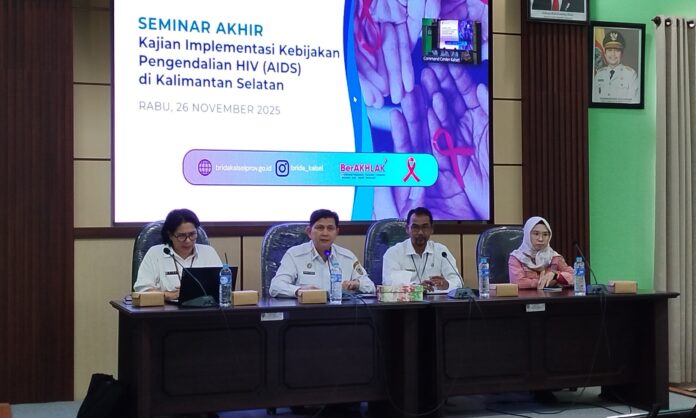 Headline9.com, BANJARBARU – Seminar Akhir Kajian Implementasi Kebijakan Pengendalian HIV (AIDS) di Kalimantan Selatan, digelar di Aula Badan Riset dan Inovasi Daerah (BRIDA) Provinsi Kalimantan Selatan, Rabu (26/11/2025).