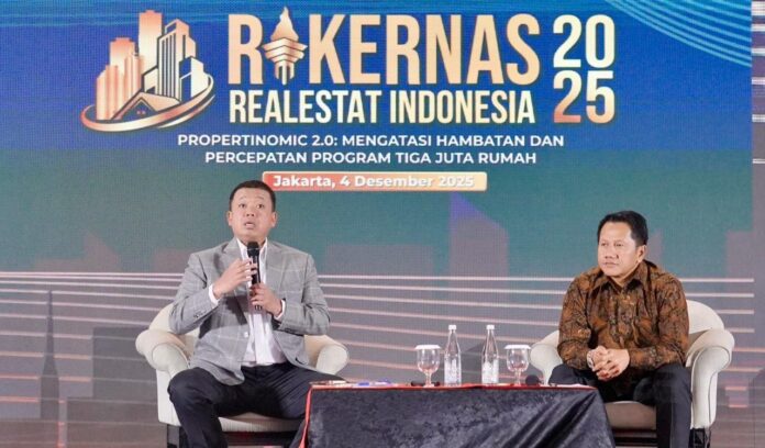 Headline9.com, JAKARTA – Menteri Agraria dan Tata Ruang/Kepala Badan Pertanahan Nasional (ATR/BPN), Nusron Wahid, menekankan pentingnya perubahan pola pengadaan tanah oleh pelaku industri perumahan agar lebih selaras dengan agenda ketahanan pangan nasional. Pesan itu ia sampaikan saat berbicara di hadapan ratusan pelaku industri perumahan, dalam Rapat Kerja Nasional (Rakernas) Realestat Indonesia (REI) Tahun 2025, Kamis (04/12/2025).