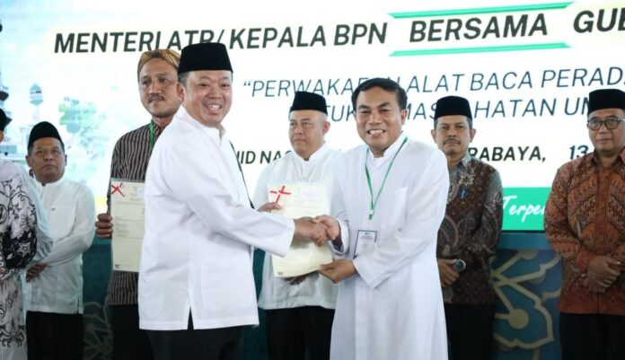 “Ini kado Natal bagi kami. Kami sangat bersyukur. Kami mengucapkan terima kasih yang sebesar-besarnya kepada pemerintah. Kerja sama antara pemerintah pusat khususnya Badan Pertanahan Nasional dan Pemerintah Provinsi Jawa Timur, sangat membantu kami dalam menyelesaikan permasalahan sertipikat secara baik,” ujar RP. Antonius Wahyuliana, CM, di lokasi penyerahan yang bertempat di Masjid Nasional Al-Akbar Surabaya.