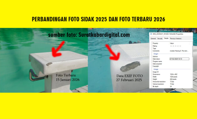 “Per 2025 sudah selesai dan 2026 ini masa pemeliharaannya juga sudah berakhir. Untuk perbaikan kemarin sudah kami laksanakan sesuai yang dilaporkan, seperti pengelasan, starting block, dan kembang kolam. Starting block sudah diganti baru,” ujar Rahmat Juliani pertengahan Januari 2026.