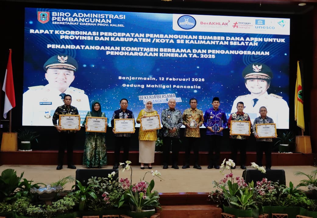 headline9.com Kotabaru – Pemerintah Kabupaten Kotabaru berhasil meraih penghargaan kategori Kinerja Dana Alokasi Khusus (DAK) Fisik Tahun Anggaran 2025 pada acara Penandatanganan Komitmen Bersama Kesanggupan Penerima Dana APBN yang digelar di Gedung Mahligai Pancasila, Kamis (12/02/2026).