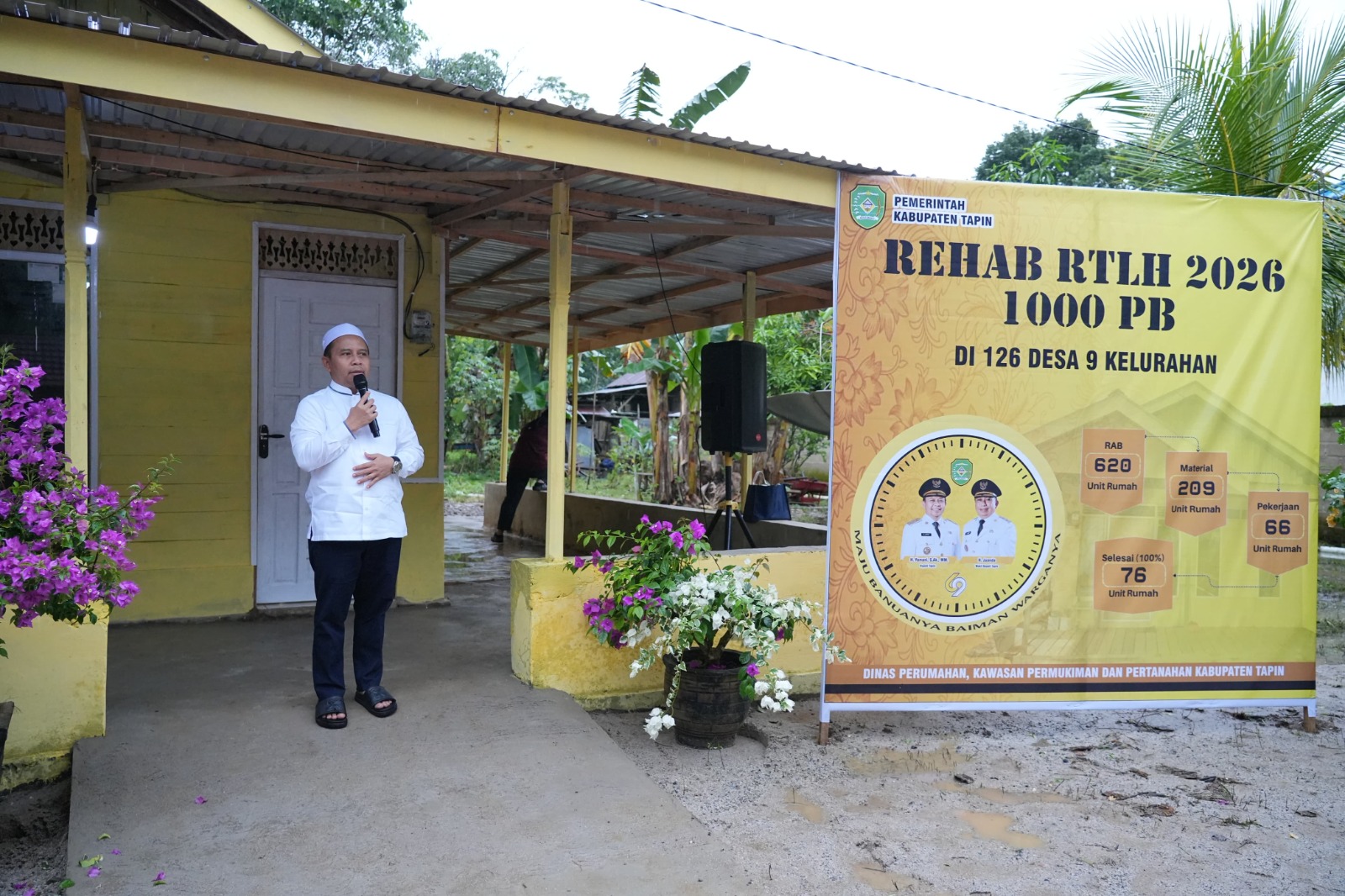 Desa Suato Baru menjadi titik awal pelaksanaan program Rumah Tidak Layak Huni (RTLH) tahun ini. Penyerahan kunci tersebut menandai komitmen berkelanjutan Pemerintah Kabupaten Tapin dalam menghadirkan hunian layak bagi masyarakat berpenghasilan rendah.