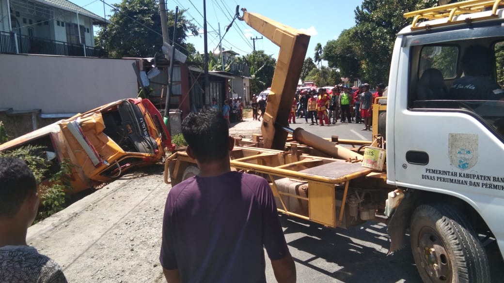 “ya, tadi saya kebetulan lagi duduk di teras rumah, saya melihat mobil pemadam ini sangat cepat menuju desa limamar, karena ada kebakaran. Kemudian mobil pemadam jenis tangki ini oleng dan terguling,” ujar saksi mata Ahmad Rifki.