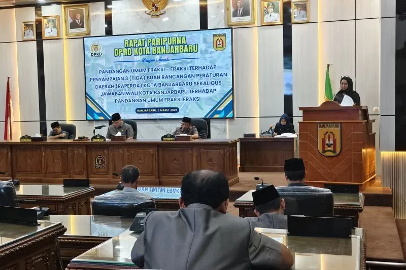 Kesepakatan tersebut disampaikan dalam rapat paripurna dengan agenda pandangan umum fraksi terhadap tiga raperda di gedung DPRD Banjarbaru, Kamis (5/3/2026).
