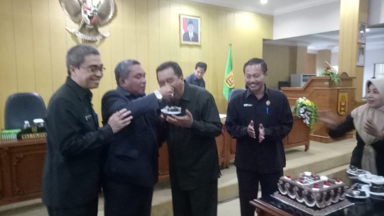 “Saya tidak menyangka ini terjadi, terimakasih untuk kejutan yang diberikan rekan media dan ini luar biasa. Saya kaget dan bingung, berpikir ini kenyataan atau bukan,” ujarnya, setelah menyuapi kue kepada Ketua DPRD AR Iwansyah. (put)