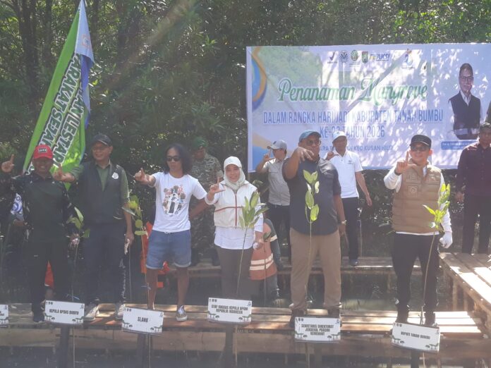 Headline9.com, BATULICIN – Dalam Rangka Hari Jadi Kabupaten Tanah Bumbu yang ke-23, Pemerintah setempat melakukan penanaman 6.600 bibit pohon magrove di Desa Muara Pagatan Kecamatan Kusan Hilir, minggu (12/4/2026).