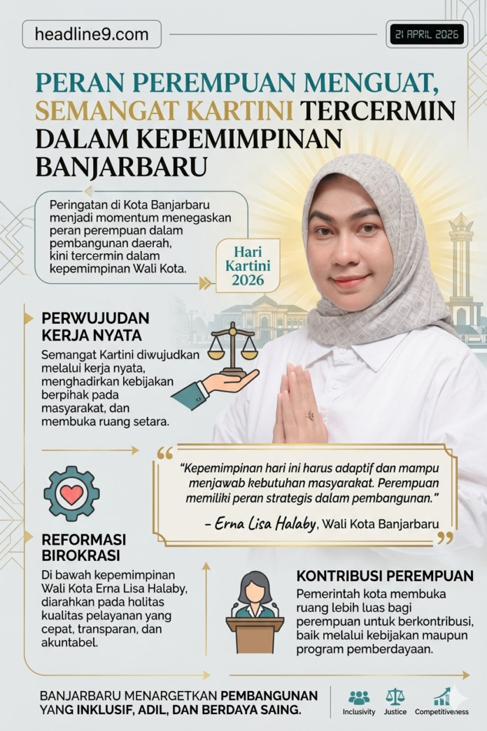 headline9.com, BANJARBARU – Peringatan Hari Kartini pada 21 April 2026 di Kota Banjarbaru menjadi momentum menegaskan peran perempuan dalam pembangunan daerah, yang kini tercermin dalam kepemimpinan Wali Kota Erna Lisa Halaby.