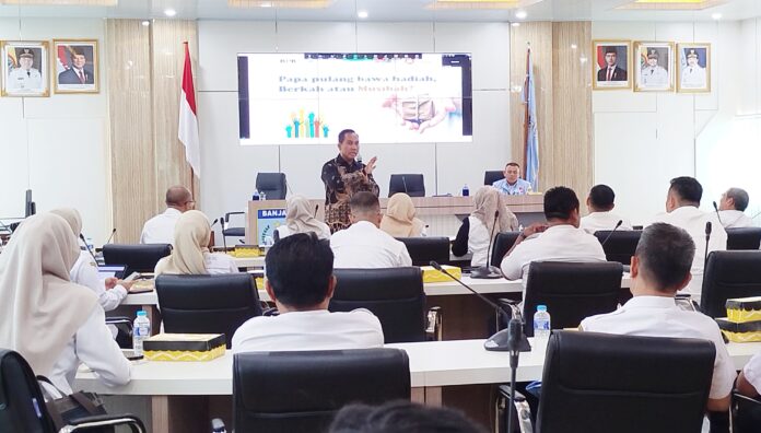 Analis Tindak Pidana Korupsi (TPK) Ahli Madya KPK, Nur Cahyadi, mengungkapkan hasil temuan tersebut saat Sosialisasi Antikorupsi di lingkungan Pemerintah Kabupaten (Pemkab) Banjar, Rabu (29/4/2026).