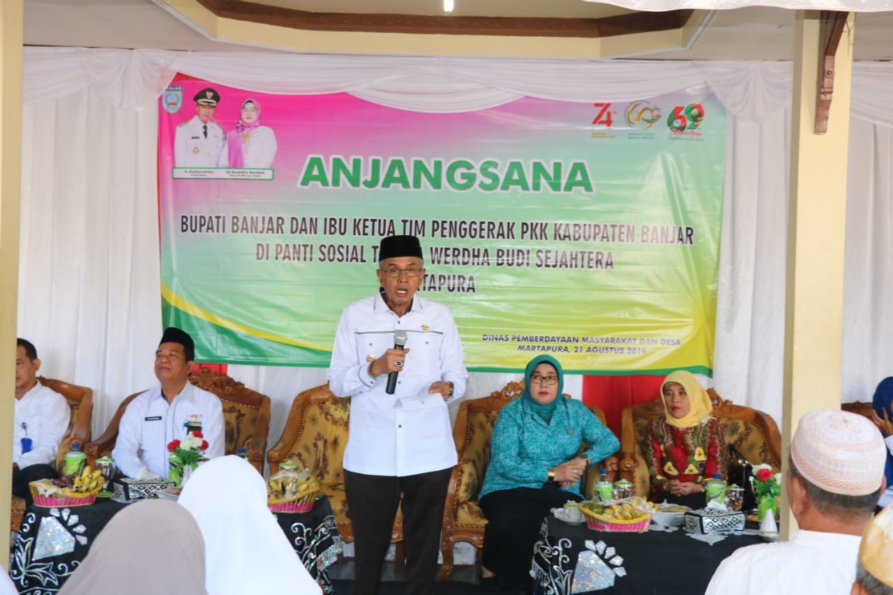 “Kegiatan seperti ini, bukan hanya sekedar bertemu dan bertatap muka dengan mereka, sekalian sebagai wujud rasa syukur, nikmat Allah SWT, dengan berbagi rasa, motivasi, moral, yang mana pada intinya, kegiatan ini adalah bentuk nyata kepedulian pemerintah daerah kepada bapak-bapak dan ibu-ibu yang tinggal di panti sosial ini,” ucap Bupati Banjar