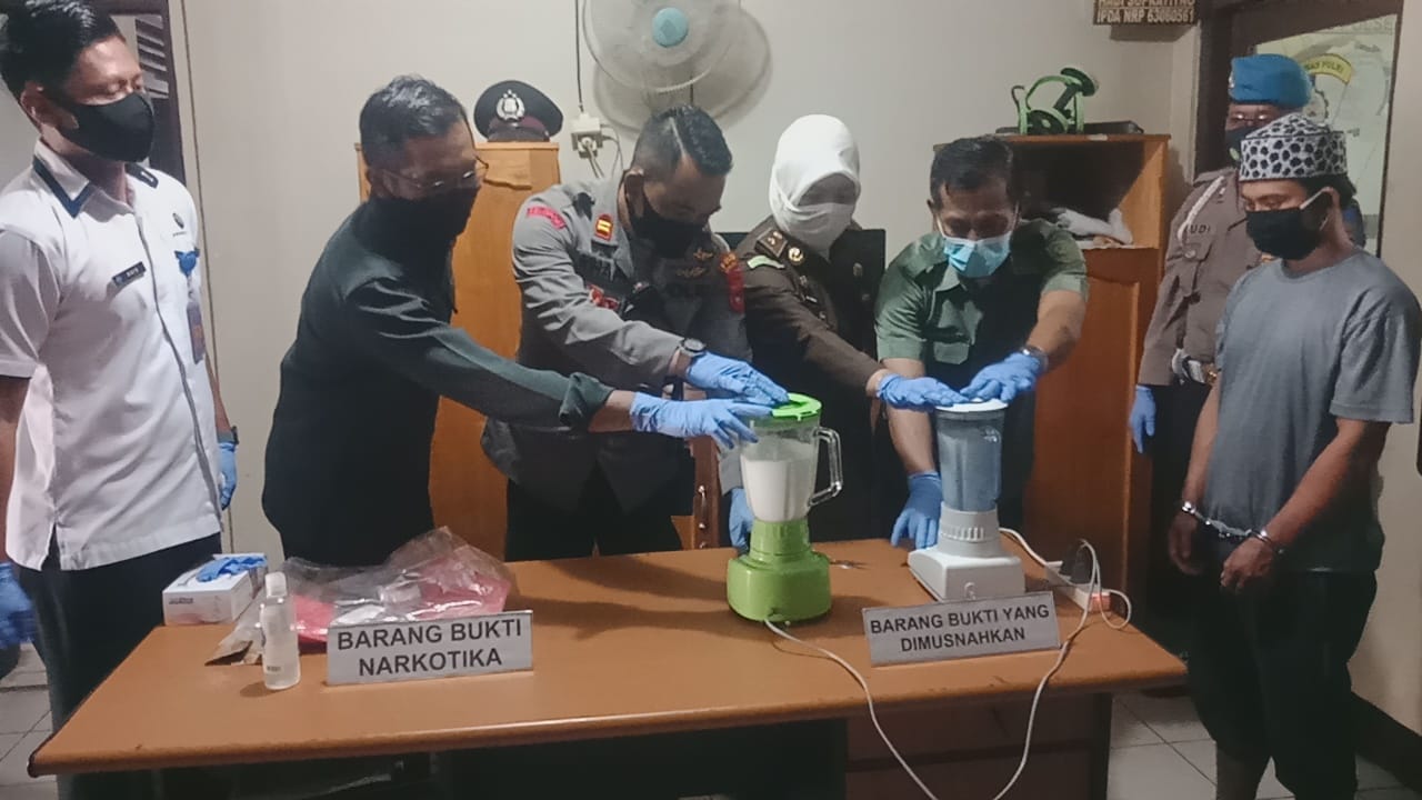 Sabu dengan berat 1,06 gram dimusnahkan dengan cara dilarutkan ke dalam air detergen, kemudian di blender dan selanjutnya dibuang ke saluran air. Sebelum dimusnahkan, barang bukti tersebut diuji melalui laboratorium untuk dipastikan keasliannya.