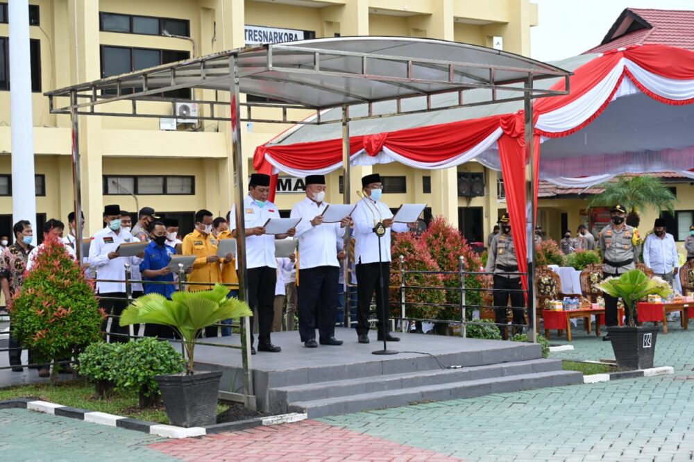 Acara yang diprakarsai oleh Polda Kalsel bersama Forum Koordinasi Pimpinan Daerah (Forkopimda) dengan tetap menerapkan protokol kesehatan ini berlangsung di Lapangan Mapolda Kalsel, Sabtu (5/12/2020) pagi.